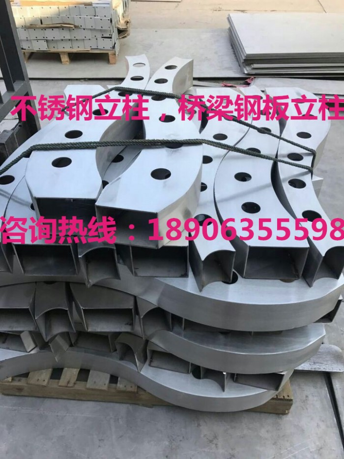 山東龍哲金屬制品有限公司有大型數控異形切割機、離子切割機、沖床、鍍鋅、噴塑車間專業生產不銹鋼復合管護欄用護欄立柱,護欄鋼板立柱、各樣式護欄鋼板立柱,鍍鋅噴塑護欄立柱,各種異形鋼板切割和鋼板加工等。  護欄鋼板立柱主要原料材質有Q系列鋼板(Q195-235)和不銹鋼鋼板,經過鍍鋅噴塑處理,使鋼板耐酸耐堿耐腐蝕、日曬雨淋不生銹,不脫層、經久耐用、豪華美觀豪、質堅、價廉等一系列突出優點,使表面光滑明亮達到美觀的效果!立柱和我們的不銹鋼復合管組合制作的護欄也成為時尚主流,大多旅游景點已經逐步在更換這種產品!其特點美觀,耐腐蝕,成本比純不銹鋼便宜很多!一座城市的繁華程度衡量的標準之一。不銹鋼復合管與鍍鋅噴塑護欄鋼板立柱配合,做成橋梁/河道護欄、市政建設、城市護欄、道路護欄、人行扶手和各種金屬景觀護欄,不僅牢固、大方,且可造型各異,給都市一種亮麗風景